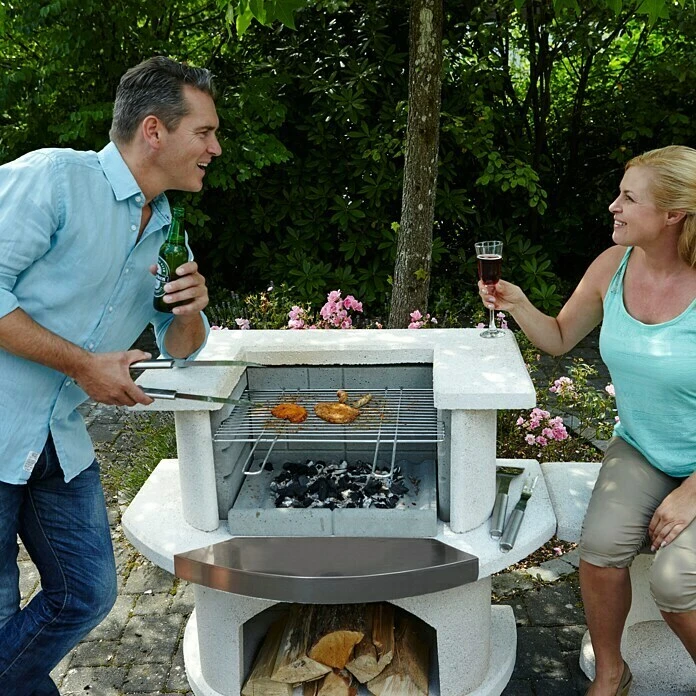 Die Grillbar Venedig von Buschbeck ist in jedem Garten ein absoluter Blickfang. Die Grillbar überzeugt zudem durch viele praktische, funktionale Details wie etwa einem höhenverstellbaren Grillrost oder einem Edelstahlsimsblech, sodass viel Platz für individuelle Grillkreationen geboten ist und hervorragende Grill- und Geschmackserlebnisse besonders leicht erzielt werden. Die massive Grillbar besteht aus stabilem Beton und ist auch als Feuerstelle verwendbar.
