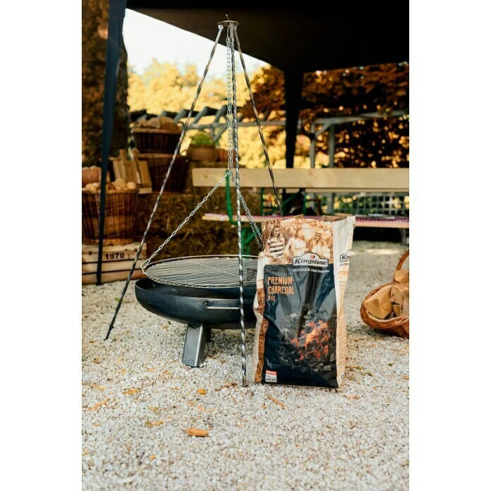 Der Buschbeck Schwenkgrill aus Stahl ist ein flexibles Grillgerät für den Garten. Der Schwenkgrill besteht aus einem stabilen Dreibein-Stativ sowie einem Grillrost, welcher mittels einer Kette geschwenkt werden kann. Durch das schwenkbare Grillrost ist eine optimale Temperaturkontrolle des Grillguts möglich. Nach dem Grillen kann das Feuer des Grills zu einem Lagerfeuer umfunktioniert werden. Der Schwenkgrill ist außerdem die passende Ergänzung zur Ø 80 – 100 cm Feuerschale von Buschbeck.