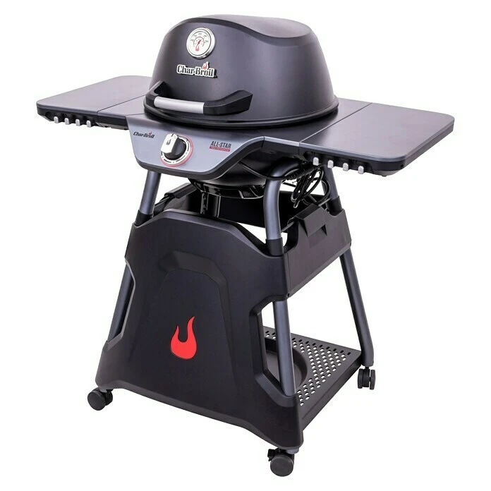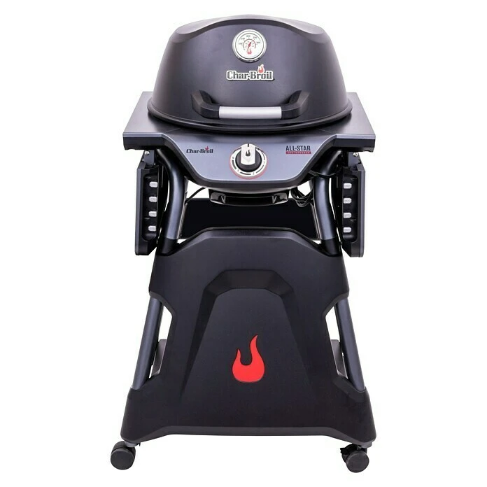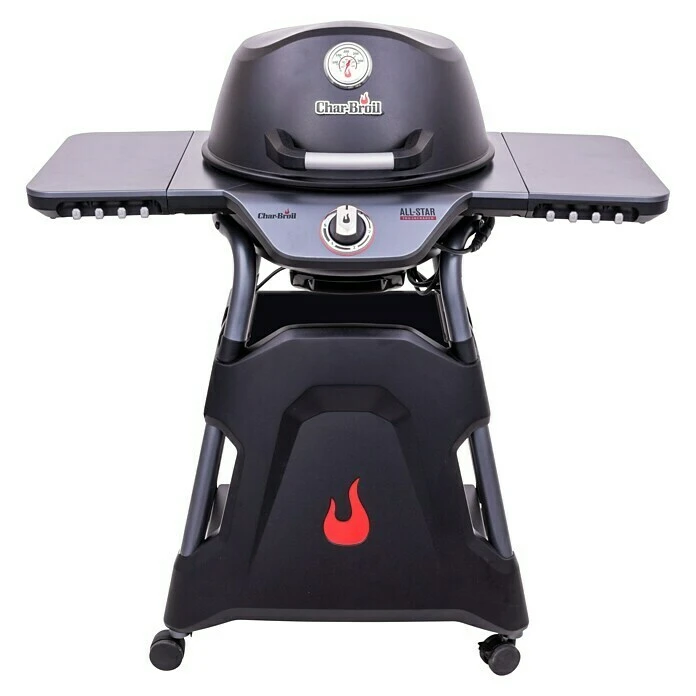 Der Char-Broil Elektrogrill All-Star 120 Electric ist ein richtiges Multitalent. Die einfache Trennung des Grills vom Rollwagen macht den All-Star zum mobilen Grill für den Wochenendausflug und zur perfekten Grillstation für Zuhause, egal ob auf dem Balkon oder der Terrasse. Bei der Elektro-Variante lassen sich über den illuminierten Kontrollknopf Temperaturen von über 300 Grad einstellen. Die gusseisernen Grillroste speichern dabei die Hitze und geben sie gleichmäßig ans Grillgut ab. Die klappbaren Seitenablagen besitzen eine integrierte Hakenleiste und bieten so den perfekten Platz für Grillzubehör.