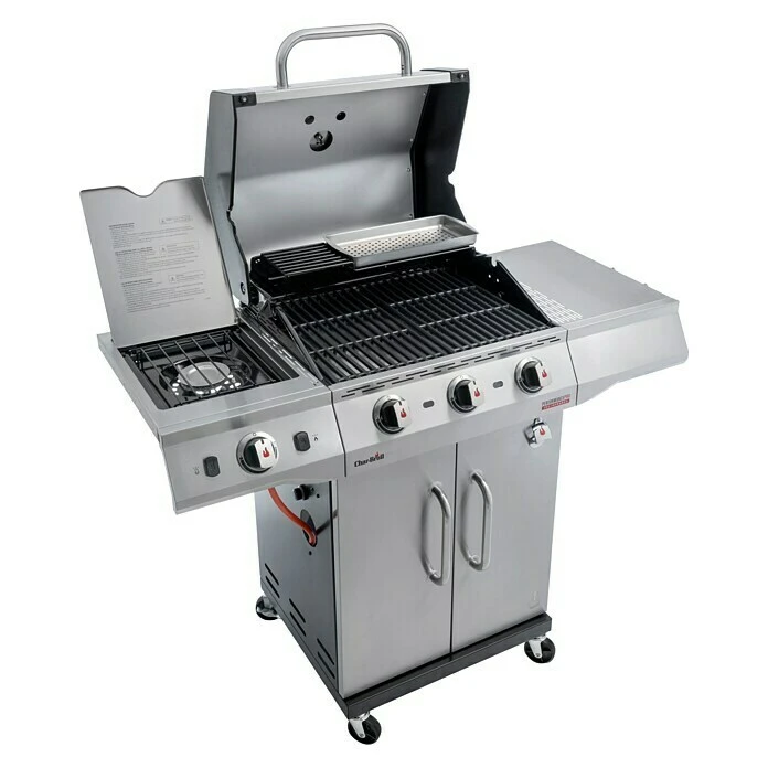 Der Char-Broil Gasgrill Performance Pro S3 ist ein kompakter Gasgrill bei dem Du auf nichts verzichten musst. Das patentierte TRU-Infrared™ Grillsystem verteilt die Hitze der drei verbrauchsarmen und rostfreien Edelstahlbrenner perfekt auf dem Grill – so wird das Grillgut bis zu 50% saftiger! Gestartet wird er per Knopfdruck mit der SureFire Zündung, über die jeder Brenner einzeln und unabhängig gezündet werden kann. Auf dem Seitenbrenner lassen sich problemlos selbstgemachte Suppen, Saucen oder Beilagen zubereiten. Der Grill ist aus hochwertigem Edelstahl gefertigt und damit absolut wetterfest. Eine, im Lieferumfang enthaltene, gusseiserne Grillplatte erweitert die Möglichkeiten, die der Grill bietet. Für das gewisse Extra sorgen die roten LEDs an den Drehknöpfen. Dank des kompakten Designs findet der Char-Broil Gasgrill Performance Pro S3 überall ein geeignetes Plätzchen und kann mit dem Char-Broil Made2Match Zubehör auch problemlos nach eigenen Wünschen erweitert werden.