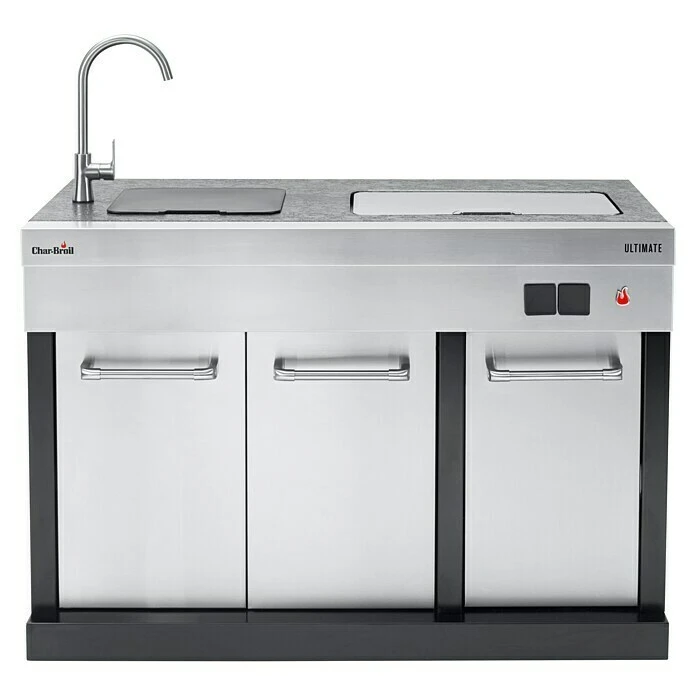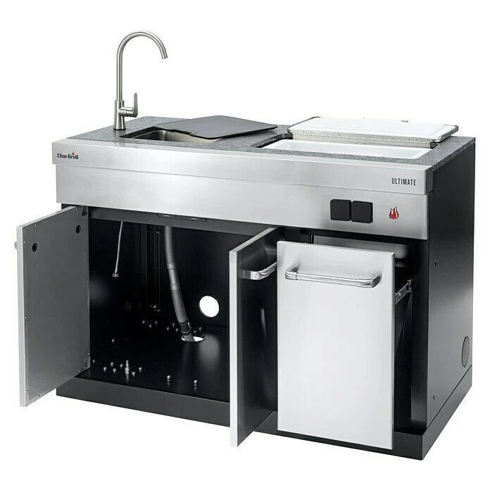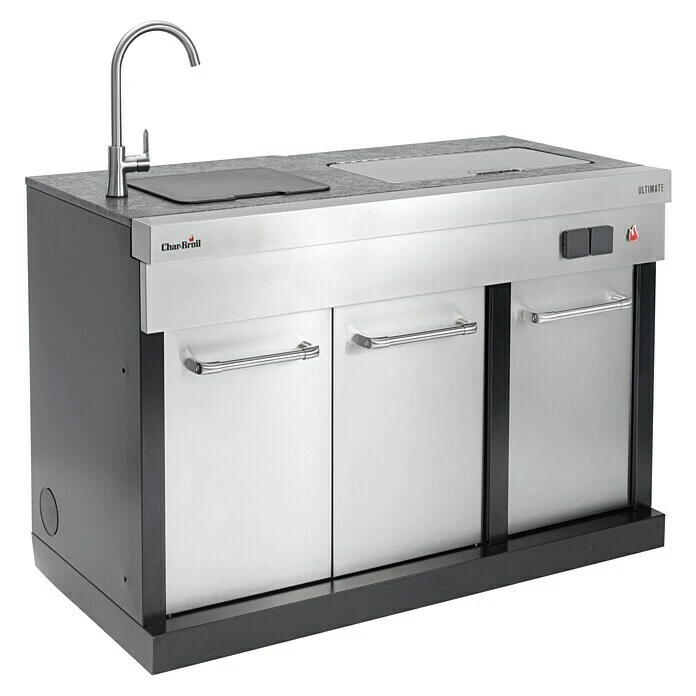 Mit dem Char-Broil Grillküchen-Modul Ultimate Entertainment verlegen Sie nicht nur Ihre Küche nach draußen, sondern schaffen gleichzeitig auch einen neuen Mittelpunkt in Ihrem Garten. Das Modul überzeugt durch seine hohe Flexibilität, einen großzügigen Komfort und eine hochwertige Verarbeitung. Das Entertainment Modul ist aus hochwertigem Edelstahl (Typ 304) mit einer Arbeitsfläche aus grauem Granit gefertigt. Die Ausstattung umfasst ein vollfunktionierendes Spülbecken, ein integriertes Plastikschneidebrett, eine herausnehmbaren Eisbox, einen ausfahrbaren Abfallbehälter, sowie eine eingelassene Doppelsteckdose. Die verschiedenen Module der Ultimate-Serie können flexibel miteinander kombiniert werden.