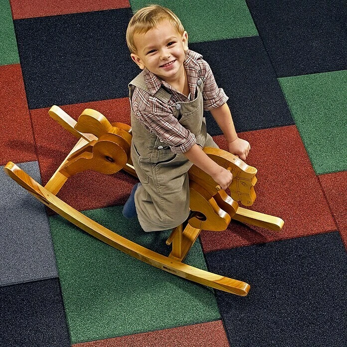 Die rutschfeste Fallschutzmatte ist aus hochwertigem Recycling-Kautschuk gefertigt, welcher wasserdurchlässig ist. Die Platte reduziert das Verletzungsrisiko und eignet sich für eine barrierefreie Nutzung. Dank ihrer Stärke von 30 mm ist sie äußerst strapazierfähig und vermittelt ein angenehmes Laufgefühl. Sie ist für einen Fallschutz von 1 m zertifiziert und kann besonders effizient unter Spielplatzgeräten verwendet werden. Das leicht zu schneidende Material ist mit vormontierten Steckverbindern ausgestattet und wird im Halbverbund verlegt.