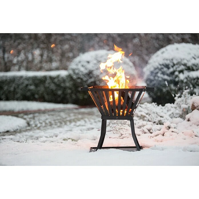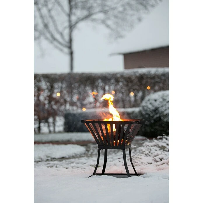 Der Feuerkorb Denver bietet eine einfache aber wirkungsvolle Möglichkeit ein sicheres, kleines Lagerfeuer im eigenen Garten zu entzünden. Mit seinen 2 Griffen kann er einfach transportiert werden, sodass er sich entweder an den schönste Platz im Garten stellen lässt oder der Feuerkorb bei Nichtgebrauch schnell verstaut werden kann. Der Feuerkorb ist aus pulverbeschichtetem Stahl gefertigt und wird mit einer Bodenschutzplatte geliefert, die feine Asche oder glühende Holzstückchen auffängt, bevor sie unschöne Flecken auf dem Boden hinterlassen. Durch seine Größe können auch mehrere Holzscheite gleichzeitig in den Korb gelegt werden. Dabei sollte nur stets auf die Verwendung von trockenem, sauberen Holz geachtet werden.