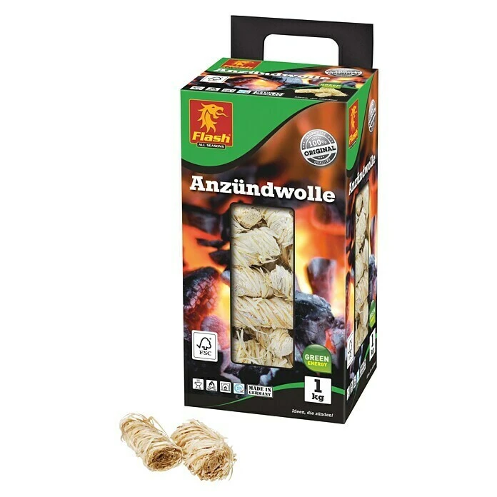 Die Anzündwolle von Flash aus Naturholz dient zum sicheren, geruchsarmen und sauberen Anzünden von Grill, Ofen und Kamin.