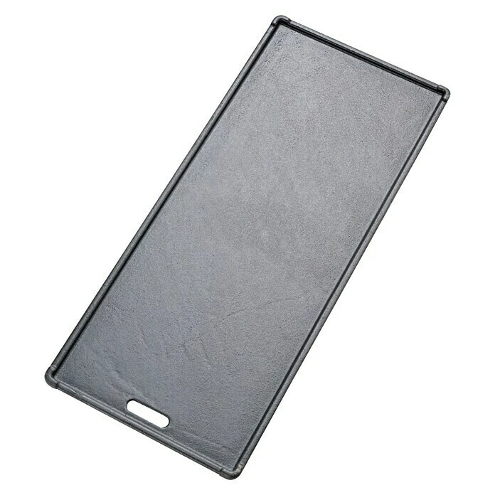 Diese große Grillstar Gusseisengrillplatte gibt die Hitze des Grills besonders effektiv an das Grillgut ab und ist zweiseitig verwendbar. So erzeugt die geriffelte Seite ein schönes Muster – Branding genannt – auf Fleisch, Fisch und Gemüse, wohingegen die glatte Seite zur Zubereitung von Spiegeleiern, Speck oder Pancakes verwendet werden kann. Sobald die Platte heiß ist, speichert sie die gesammelte Wärme und ermöglicht auch bei schwächerer Hitzeentwicklung ein gutes Grillergebnis.