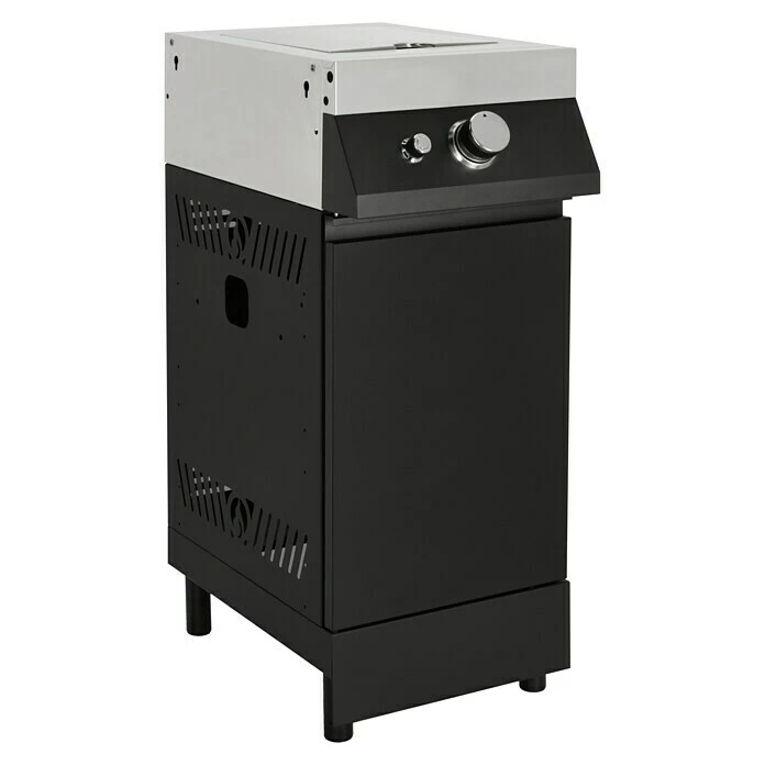 Das Seitenbrenner Modul Beast erweitert Ihre Grillküche, um einen Hochtemperatur Brenner, die Beast Zone. Auf diesem lassen sich bei bis zu 700°C Steaks perfekt braten. Durch die hohe Hitze kann das Steak in kürzester Zeit scharf angebraten werden, sodass eine leckere, karamellisierte Kruste entsteht. Das bedeutet mehr Geschmack und mehr Aroma für das Grillgut. Der Gusseisen Grillrost trägt mit seiner Wärmespeicherfähigkeit zusätzlich zu einem leckeren Ergebnis bei. Über höhenverstellbare Füße lässt sich der Schrank zudem exakt an den Gegebenheiten in Ihrem Garten ausrichten. Der Unterschrank bietet Platz für Gasflaschen bis 11 kg.