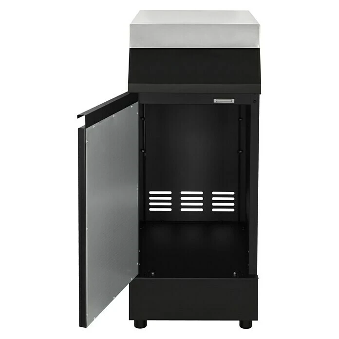 Das kleine Seitenschrank Modul ist ideal, wenn Sie Ihre Grillküche um Stauraum erweitern wollen. Der Seitenschrank besitzt eine große, stabile Tür, so dass auch größere Grillutensilien untergebracht werden können. So ist z.B. Platz für eine 11 kg Gasflasche, mit der der Grill oder eins der Seitenbrenner Module betrieben werden kann. An den Seiten des Schranks befinden sich dafür Ausschnitte, durch die der Gasschlauch hindurchgeführt werden kann. Über höhenverstellbare Füße lässt sich der Schrank zudem exakt an den Gegebenheiten in Ihrem Garten ausrichten.