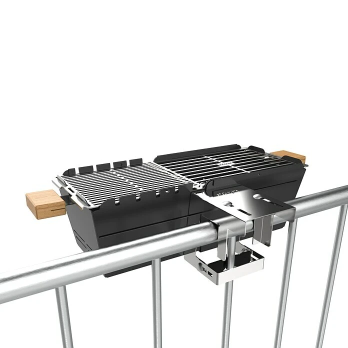 Die Balkonhalterung von Knister ist aus langlebigem, rostfreien Edelstahl gefertigt und für alle Knister Grillmodelle geeignet. Durch verschiedene Verstellmöglichkeiten lässt sie sich an einem Großteil der Balkongeländer problemlos anbringen, egal ob flach, rund oder eckig. Des weiteren ist es auch möglich, sie an einer Boots Reling zu befestigen, sodass dem entspannten Grillen auch auf dem Boot nichts im Wege steht.