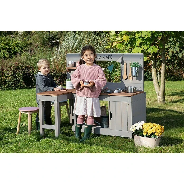 Muddy Buddy Matschküche Mud Café 100 X 71,5 X 110 Cm, Zypresse, Warmgrau