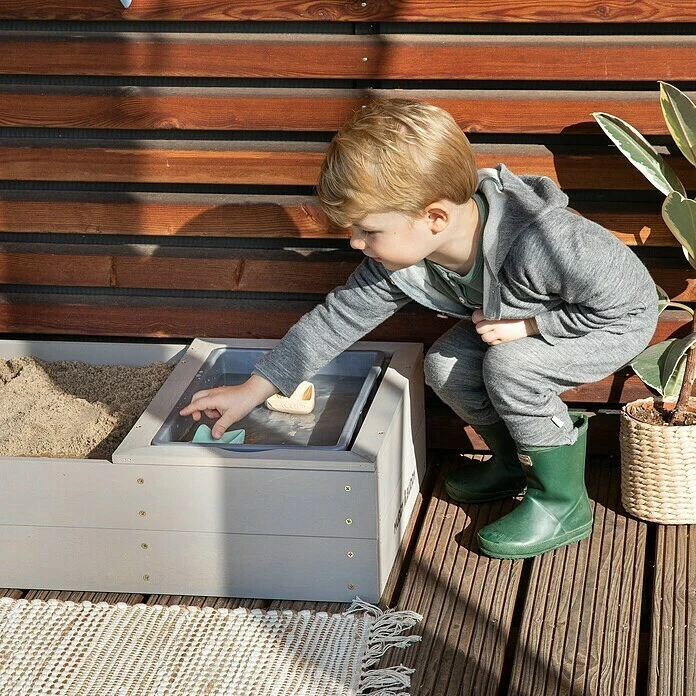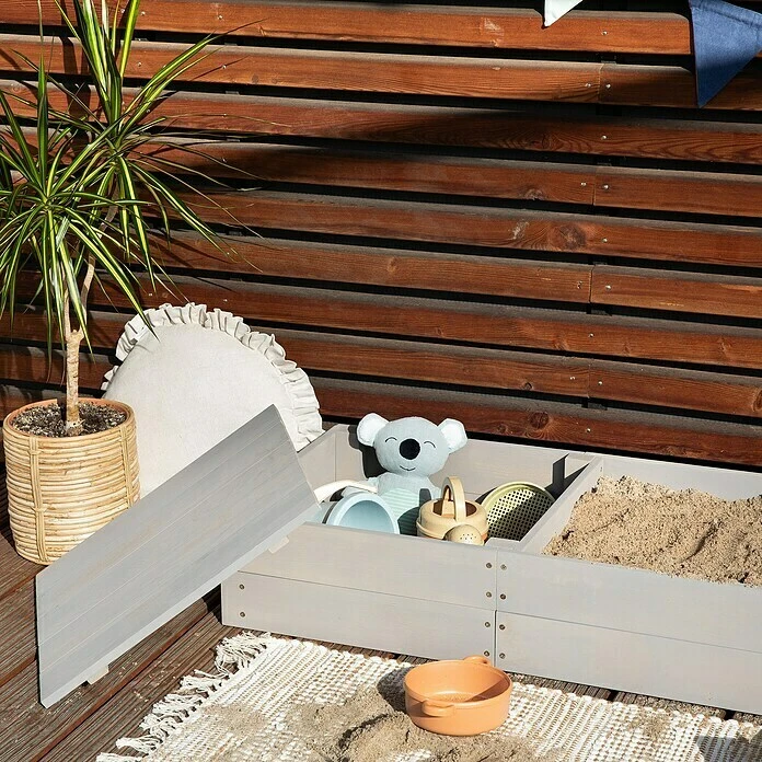 Großer Buddelspaß auf kleinem Raum bietet dieser hochwertige, kompakte Muddy Buddy Sandkasten Space Saver. Dabei lässt er keine Wünsche offen: Es gibt eine Kunststoffwanne, zum Matschen mit Sand und Wasser und ein Staufach mit Deckel zur Aufbewahrung von Sandspielzeug. Dieser Sandkasten überzeugt nicht nur durch sein hübsches Design, sondern ist ein wahres Platzwunder und ideal geeignet für kleinere Balkone und Terrassen. Hinweis: Dekoration nicht im Lieferumfang enthalten.