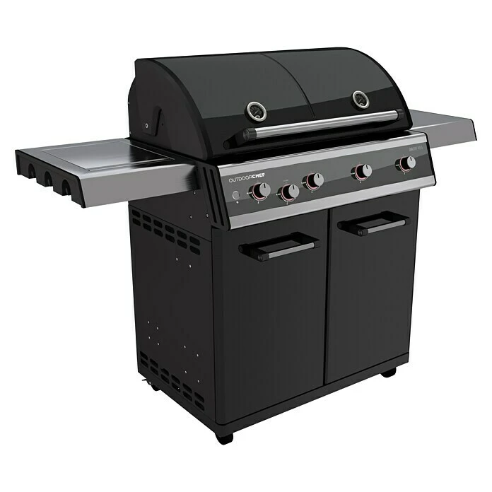 Der Outdoorchef Gasgrill Dualchef 425 G verwandelt jeden Garten im Handumdrehen in einen Ort für eine Grillparty mit Familie und Freunden und überzeugt dabei mit seinem edlen, schwarzen Design. Seine drei Gusseisen Grillroste mit einer Gesamtgröße von 81,2 x 44 cm lassen sich auf verschiedenste Arten flexibel nutzen. Wollen Sie viel Grillgut mit gleicher Temperatur und Grillmethode grillen? Kein Problem, nutzen Sie die gesamte Größe der Gusseisen Roste. Steht Ihnen hingegen der Sinn nach Grillgut mit unterschiedlichen Temperaturanforderungen oder Grillmethoden? Auch kein Problem. Mit dem DGS Zone Divider lässt sich der Grill in Temperaturzonen aufteilen. So können Sie z.B. auf der einen Seite direkt mit hoher Hitze grillen, während Sie auf der anderen Seite indirekt mit geringer Hitze ein anderes Grillgut zubereiten. Zudem wird beim Dualchef 425 G Sicherheit groß geschrieben. Zum einen reduzieren die DGS Protection Bars das Risiko eines Fettbrandes durch Abdeckung der Brenner und zum anderen zeigen die beleuchteten Drehregler sofort an, ob ein Gasventil geöffnet ist oder nicht. Der Dualchef 425 G vereint Flexibilität, Sicherheit und Grillvergnügen sodass keine Wünsche offen bleiben. Dabei kommen allerdings edles Design und Zusatzfeatures wie Seitenkocher, Warmhalterost, klappbare Seitenablagen und ein großer Unterschrank für Zubehör und Gasflasche nicht zu kurz. Maße (Seitentische ausgeklappt): 159 x 123 x 63 cm (B x H x T); Maße (Seitentische eingeklappt): 105 x 123 x 63 cm (B x H x T).