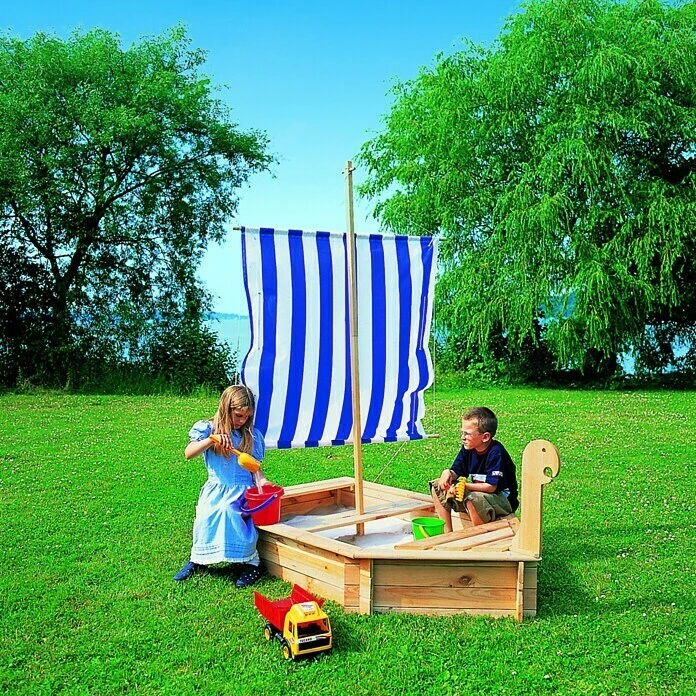 Promadino Sandkasten Störtebeker 196 X 116 X 222 Cm, Kiefer, Mit Segel
