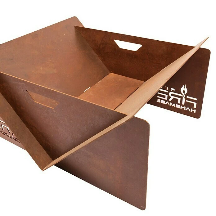 Die RedFire Feuerschale V ist aus robustem, 2 mm starkem Stahl in Rostoptik gefertigt. Sie ist sehr standfest und kann durch ihre Größe auch mit größeren Holzscheiten genutzt werden. Die V-Form sorgt während des Betriebs dafür, dass die Asche nach unten rutsch und somit genug Platz zum Nachlegen von Holz vorhanden ist. Durch die 2 Griffe lässt sie sich bei Nichtgebrauch einfach an einem geschützten Ort unterstellen.