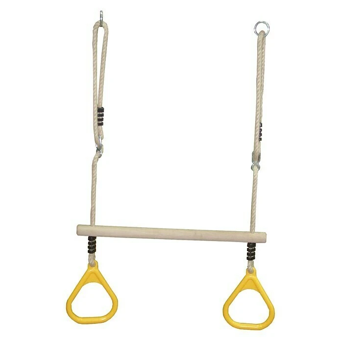 Das Ringtrapez besteht aus 60 cm breiten Hartholzsprossen, dreiecksförmigen Kunststoffringen sowie Kunsthanfseilen. Durch die hochwertigen Materialien wird eine Belastbarkeit von bis zu 70 kg erreicht. Die einstellbare Seillänge ermöglicht eine individuelle Anpassung des Ringtrapezes.