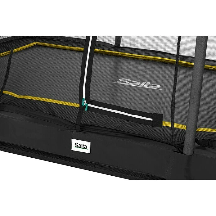 Das Salta Comfort Edition Ground ist das perfekte Einstiegsmodell unter die Inground-Trampoline von Salta. Durch das moderne und attraktive Design passt dieses Trampolin in jeden Garten! Für ein komfortables Springresultat ist das Trampolin an der Unterseite mit einem Netz versehen, sodass sich die beim Springen frei werdende Luft optimal verteilen kann. Mit den mitgelieferten robusten Bodenankern kann das Trampolin besonders fest im Boden verankert werden. Das Trampolin befindet sich nur 20 cm über dem Boden, was zu einem niedrigen Auf- und Abstieg beiträgt und somit leicht für Kinder zu betreten ist. Der schwarze Stahlrahmen ist verzinkt und sorgt für eine solide Konstruktion. Während dem Springen auf dem Comfort Edition Ground brauchst du dir keine Sorgen um deine Sicherheit zu machen. Mit dem doppelseitigem Reißverschluss können Kinder das Netz von beiden Seiten einfach öffnen und schließen.