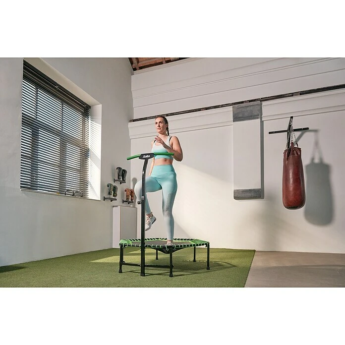 Mit dem professionellen Salta Fitness Trampolin trainierst du alle Muskeln und verbesserst deine Kondition, Kraft und Ausdauer. Das Fitness Trampolin eignet sich sowohl für Anfänger als auch für erfahrene Benutzer. Die Stange mit dem Handgriff ist leicht in 5 verschiedene Positionen verstellbar, sodass du den Handgriff auf jede gewünschte Höhe einstellen kannst. Die sechseckige Konstruktion von dem Salta Fitness Trampolin formt eine robuste und solide Basis. Dank der optimalen Einstellung der elastischen Federung entstehen beim Springen kaum Geräusche und dein Rücken und Gelenke werden geschont. Mit diesem Trampolin trainierst du daher deine Muskeln auf verantwortungsbewusste Weise und erzielst eine bessere Kondition. Das Salta Fitness ist perfekt um in Form zu kommen und deine Gesundheit zu verbessern!