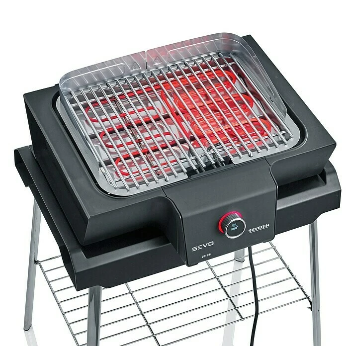 Mit dem Severin Elektrogrill PG 8119 Sevo GS wird das Grillen zum Kinderspiel. Innerhalb von 10 Minuten ist der Grill auf 500°C aufgeheizt und das Grillen kann beginnen. Dabei überzeugt er mit seinen 2 Edelstahl Grillrosten und der Boost Zone, sodass Temperaturen bis 500°C erreicht werden können. Dabei behalten Sie dank Timer, Temperaturanzeige auf OLED Display und Kernthermometer stets die Kontrolle und können bei Bedarf eingreifen. Sicherheit wird natürlich auch groß geschrieben. Verbrennungen werden durch das Safe Touch Gehäuse verhindert, der Sicherheits-Mikroschalter schaltet das Heizelement bei Entnahme automatisch ab und das Wasser in der Reflektorschale verhindert Fettbrände. Da viele Teile entnehmbar sind, ist die Reinigung ein leichtes. Der Grill steht auf einem stabilen Untergestell, auf das er ohne Montage aufgesetzt werden kann. Zusätzlich kann der Grill auch ohne das Untergestell als Tischgrill genutzt werden (B x H X T: 57 x 32 x 50 cm). Dabei kann auch der Windschutz abgenommen werden, sodass der Grill von allen Seiten bedienbar ist.