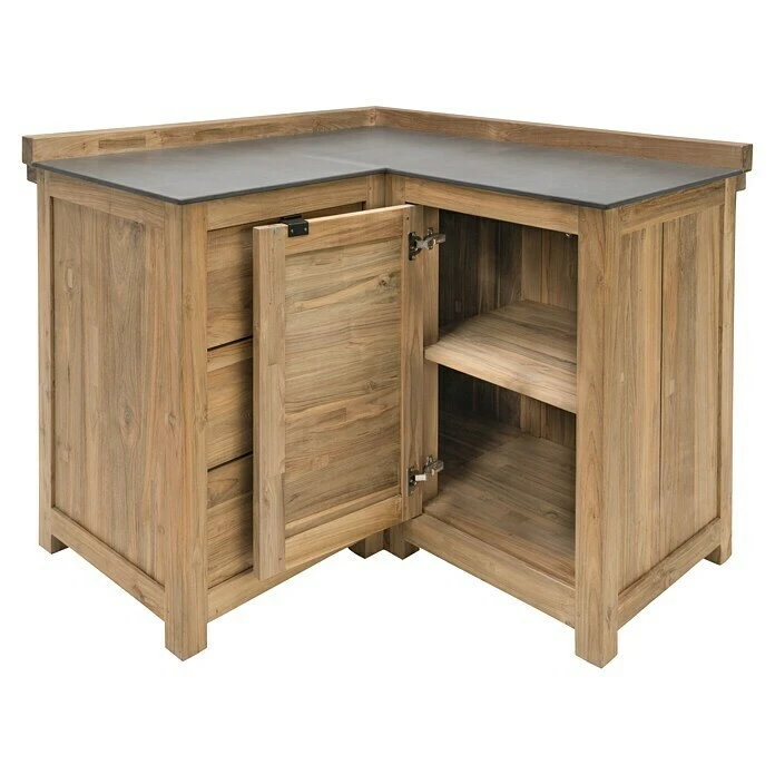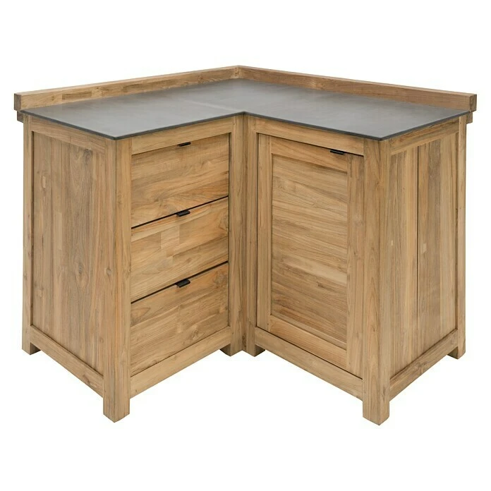 Mit den Zoe Teak Grillküchen-Modulen kann eine individuelle Outdoor-Küche zusammengestellt werden, welche durch verschiedene Kombinationen ideal an die Gegebenheiten auf der eigenen Terrasse oder im heimischen Garten angepasst werden kann.
