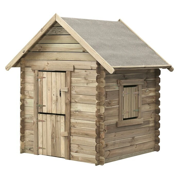 Das SwingKing Spielhaus Louise ist ein solides Spielhaus aus imprägniertem Holz. Das Spielhaus hat eine 2-teilige Tür und ein Fenster mit Fensterläden. Das Spielhaus hat keinen Boden.