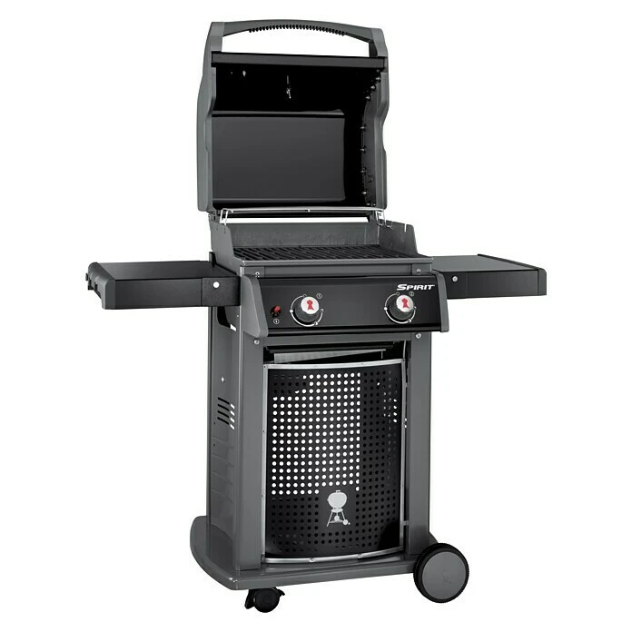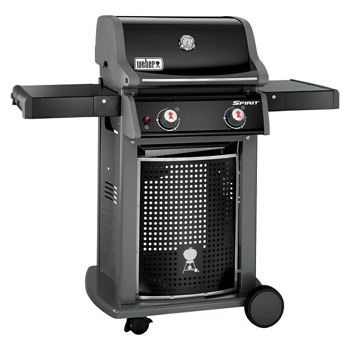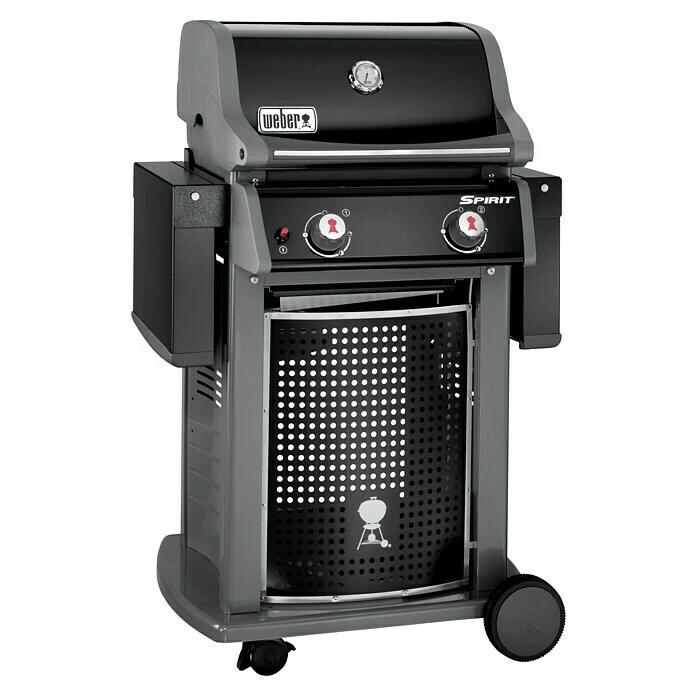 Der Weber Gasgrill Spirit E 210 Classic ist das ideale Einsteigermodell mit Profi-Ausstattung und optimalen Komfort. Die 2 getrennt regelbaren Brenner sind stufenlos einstellbar. Dadurch wird eine bestmögliche Heizleistung beim indirekten und direkten Grillen ermöglicht. Die Piezo-Zündung und das Crossover-Zündsystem garantiert ein einfaches und sicheres Zünden. Der emaillierte Deckel verfügt über ein integriertes Thermometer. Dadurch ist eine Temperaturkontrolle möglich. Die porzellanemaillierten Aromaschienen bieten außergewöhnlichen Grillgenuss und bieten Schutz vor Fettbrand. Dieser Gasgrill ist mit herunterklappbaren Seitentische ausgestattet, die jede Menge Arbeits- und Ablagefläche für Grillgut, Grillbesteck oder auch Teller bieten. Im funktionalen Unterschrank kann eine 5 kg Gasflasche problemlos platziert werden. Dank der 2 feststellbaren Lenkrollen und 2 wetterfesten Räder ist der Grill leicht beweglich und damit überall im Außenbereich einsetzbar.