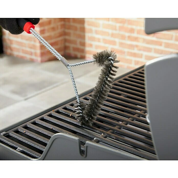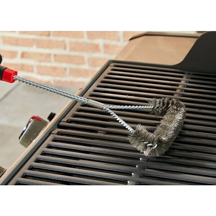 Mit der dreiseitigen Weber Grillbürste lässt sich der Grill im Handumdrehen reinigen. Durch die breite Bürste sind selbst große Roste im Nu wieder sauber. Selbst Zwischenräume und schmale Stellen sind dank der dreieckigen Form gut zu erreichen und zu säubern. Mit ihrer Länge von knapp 46 cm ist zudem ein sicherer Abstand zum Grillrost gewährleistet. Mit einer praktischen Schlaufe am Ende des Griffs lässt sie sich einfach aufhängen.