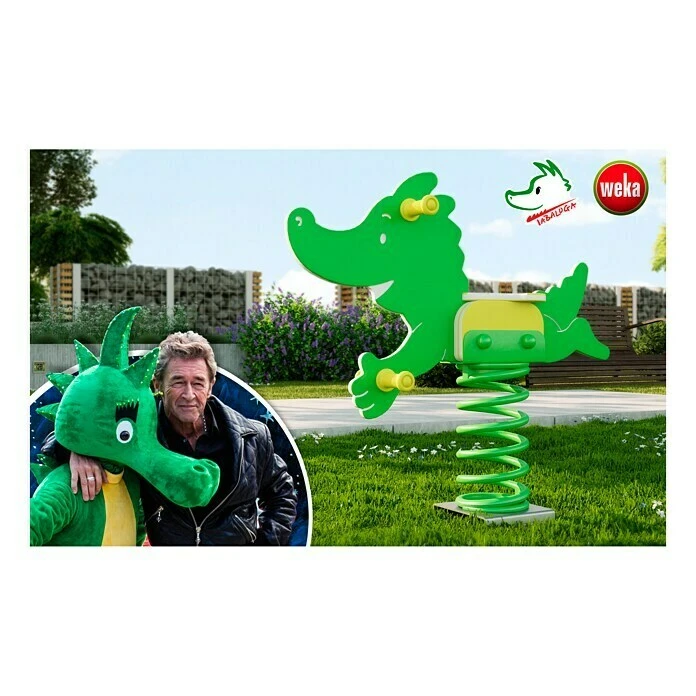 Die Weka Federwippe im einzigartigen Tabaluga Design bietet Spielspaß pur und das nicht nur für die kleinsten. Der massive Federdrache ist aus HDPE-Kunststoff gefertigt und ist mit einer robusten Stahlfeder auf einem stabilen Standfuß ausgestattet. Für den notwendigen Halt beim Hin- und Her schaukeln sorgen die verstärkten Kunststoffhaltegriffe sowie die anti-rutsch Fußstützen. Der TÜV geprüfte Drache ist bis 50 kg belastbar und für öffentliche Einrichtungen (Norm EN 1176-1) zugelassen.